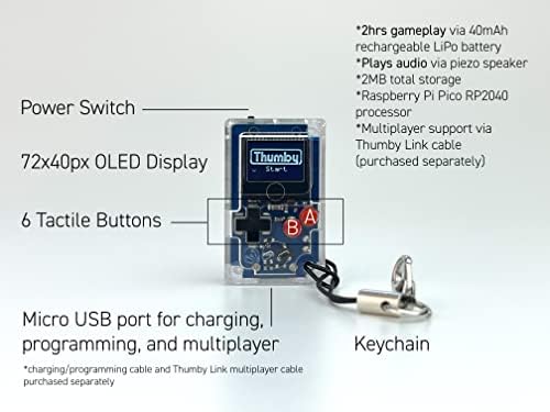 SOLO/MULTIPLAYER – Play by yourself or against friends with the Thumby Link cable (purchased separately)